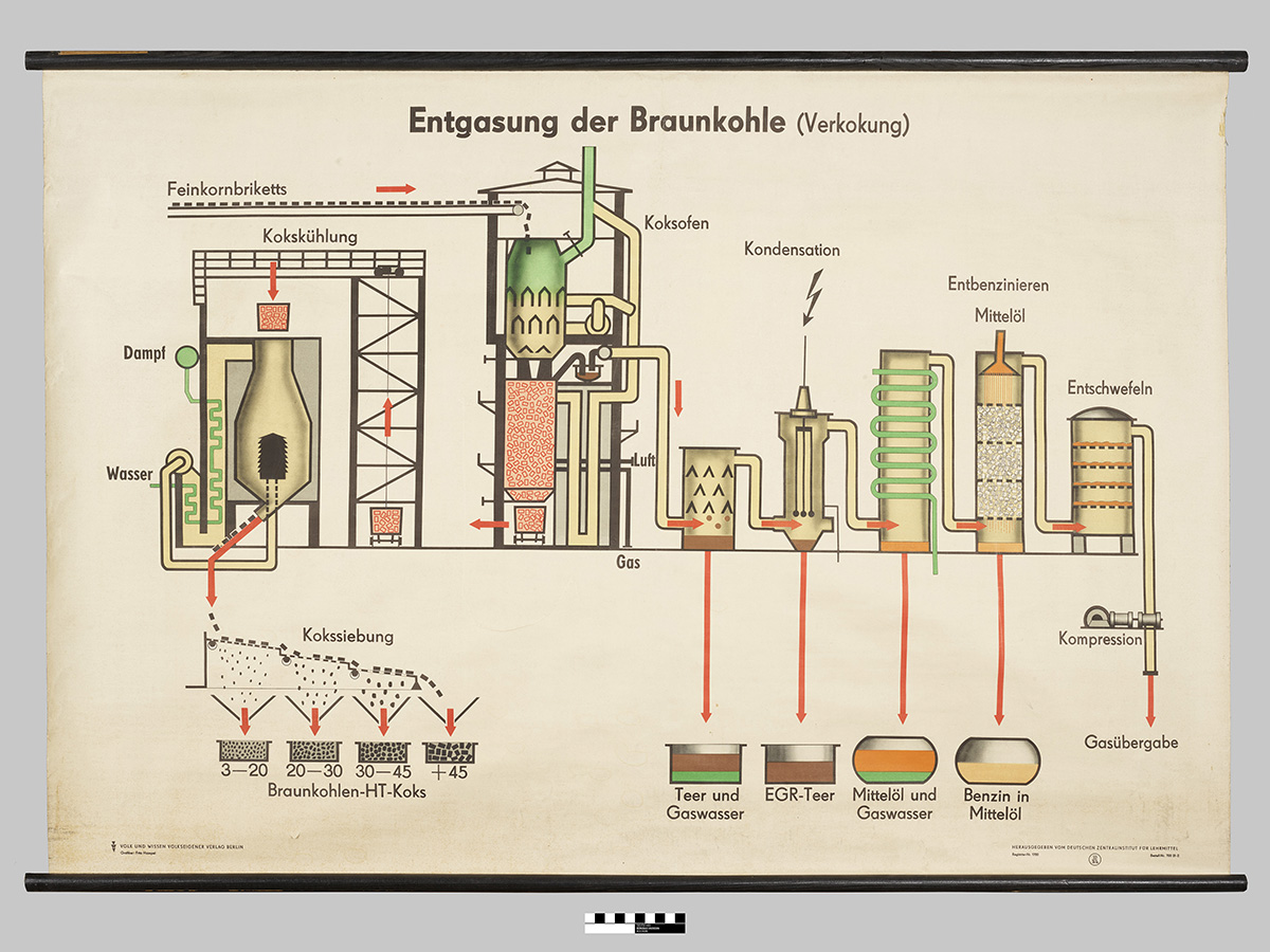 Das Schulwandbild „Entgasung der Braunkohlen (Verkokung)“